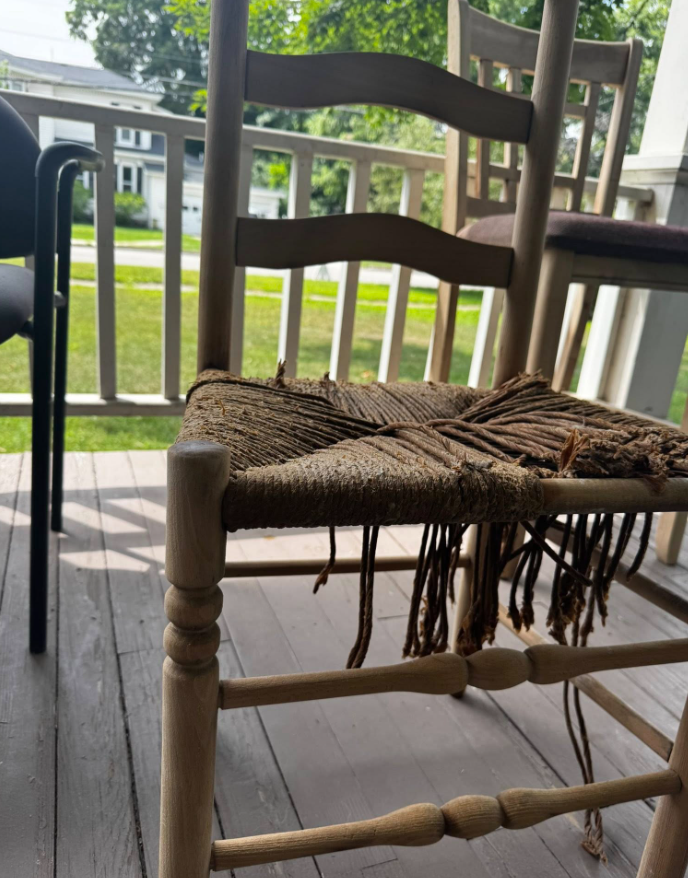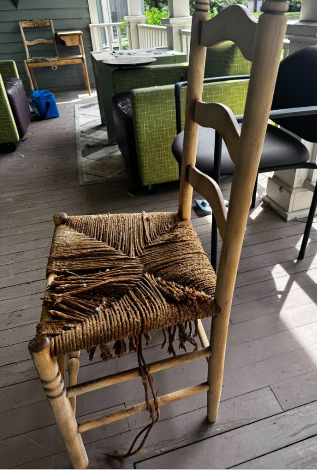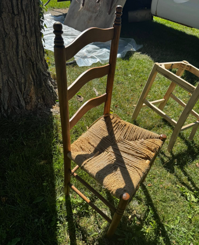 A recently blasted wooden chair ready for restoration. This provides you with endless possibilities.